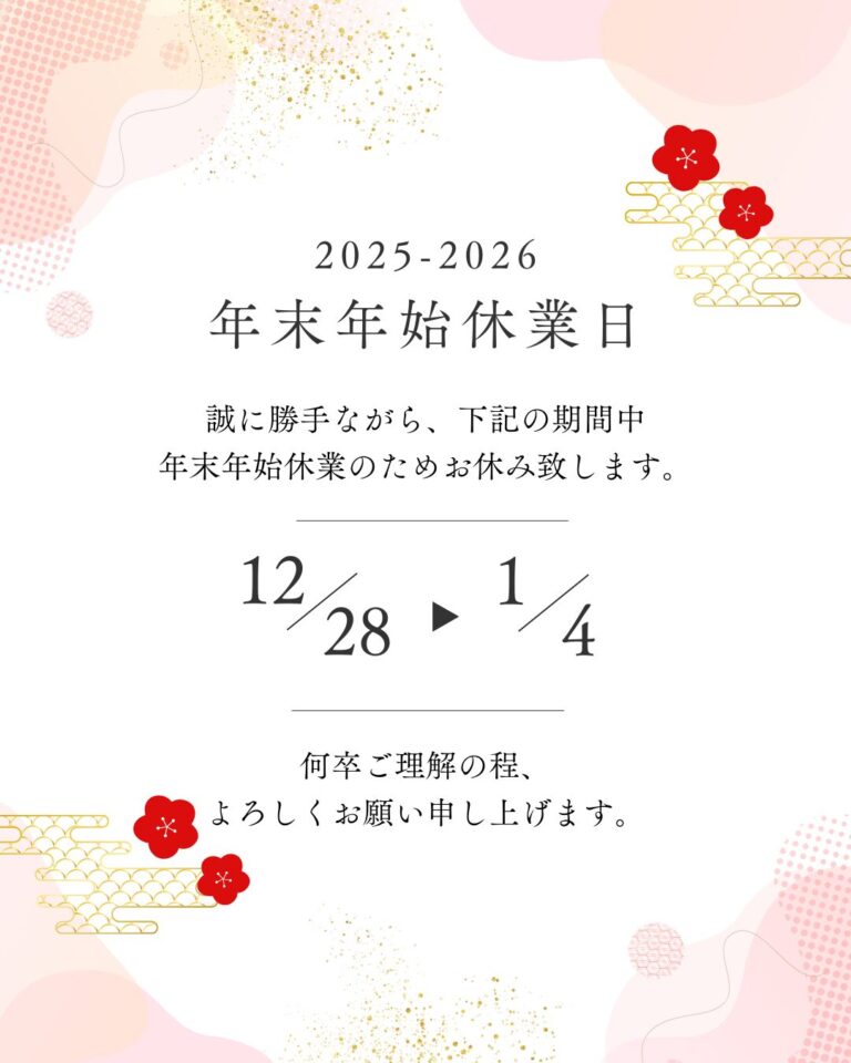 年末年始のご挨拶 年末年始休業 12月28日(日)~2026年1月4日(日) 本年もMaRUの事業を […] -